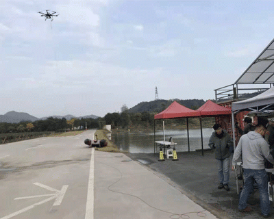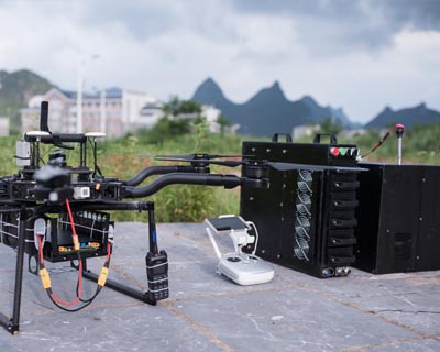 2017年8月11日,桂林系留航空科技有限公司與桂林市公安局聯(lián)合測試Axiliu系留無人機(jī)應(yīng)急通信保障系統(tǒng)。 測試結(jié)果表明:Axiliu系留無人機(jī)能持續(xù)、穩(wěn)定地懸停在100米以上的空中;通過掛載的中繼,能在5分鐘內(nèi)恢復(fù)周邊地區(qū)的通信,從而為應(yīng)急通信提供保障。 Axiliu系留無人機(jī)升空平臺,集成了無人機(jī)系統(tǒng)、系留電源供電系統(tǒng)、系